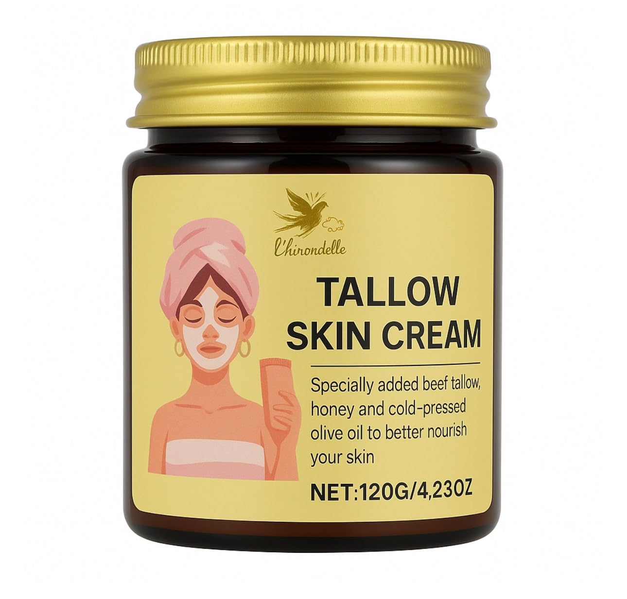 L'HIRONDELLE Beef Tallow for Skin, Tallow Honey Balm, Organic Grass-Fed Beef Tallow Balm with Raw Honey, Natural Soothing Moisturizing (Unscented)