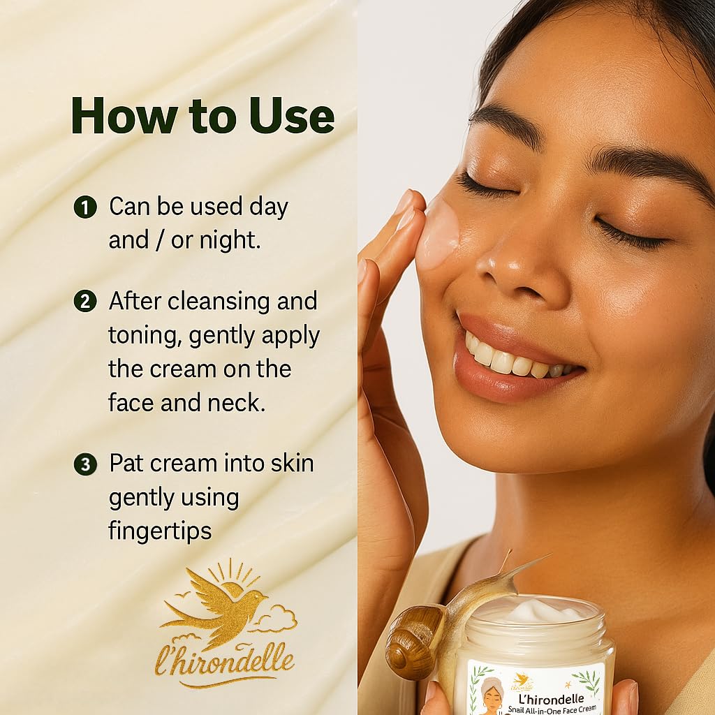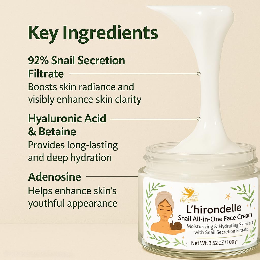 L'HIRONDELLE Snail 92 All-in-One Face Cream, 100 g (3.52 oz) | Hydrating & Nourishing Face Moisturizer to Help Improve the Appearance of Dry, Dull Skin | For All Skin Types